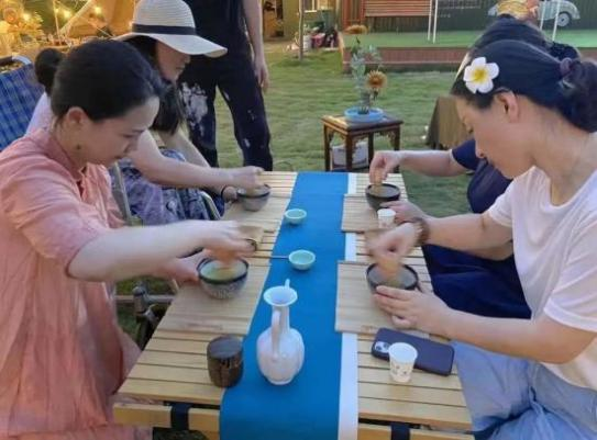 径山茶宴以点茶闻名,在实践过程中,团队还在当地开展了以“风雅宋韵”为主题的特色茶艺活动,还原点茶流程,传承宋代茶宴礼仪。团队成员邀请游客一同点茶,让大家感受绵延至今的宋韵风华。整场活动还通过线上直播的方式,向更多的人展示点茶的完整过程,为径山文化引流推广,输出优秀传统宋韵文化。