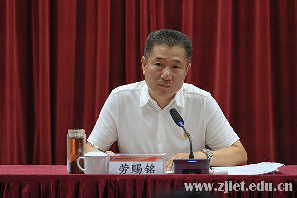 会上,劳赐铭传达了省委书记袁家军同志在26日上午召开的全省经济稳进提质攻坚行动工作例会上的讲话精神,介绍了2022年全省高职院校书记院(校)长培训班情况,分享了培训期间的所学所得。