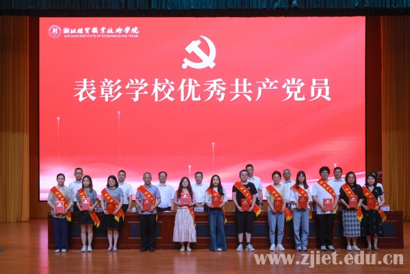 党委委员、副校长何学军宣读了表彰文件。会上表彰了浙江省高校先进基层党组织、优秀党务工作者,学校先进基层党组织、优秀共产党员、优秀党务工作者。先进基层党组织代表、数智财金学院大数据与会计教研室党支部书记解媚霞,优秀共产党员代表、合作经济学院教师党支部王文钰,浙江省高校优秀党务工作者、食品健康学院食品营养与检测教研室党支部张波作了发言。