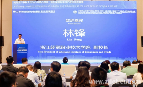 近日,由我校和大连理工大学出版社、博鳌职业教育发展大会组委会共同主办的2025东盟职业教育产教融合国际合作研讨会暨中国一东盟数字产教融合共同体成立大会在杭州大会展中心成功举行。此次会议共邀请柬埔寨、马来西亚、越南、东帝汶等东盟国家,以及国内近40余家院校、企业负责人、教师代表200余人参加会议。学校副校长林锋出席会议并致辞。学校国际教育学院、国际交流与合作中心负责人及商务智能学院相关教师代表参加会议。